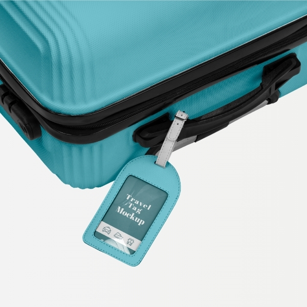 Custom printed luggage tags for travel branding and giveaways.